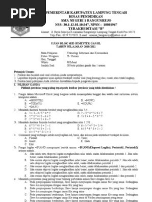Pada kesempatan kali ini akan kami bagikan contoh latihan soal mid / uts / ulangan tengah semester 2 (genap) kelas x dan xi sma / ma mapel tik / komputer Latihan soal tik kelas x mid semester genap. Soal tik semester genap (2) sekolah menengan atas pilihan ganda dan jawabannya pada goresan pena ini, dibutuhkan sanggup membantu guru yang mengajar sebagai . Tulis permintaan anda dan kirim ke: Oke langsung saja berikut ini contoh soal tik kelas x pilihan ganda dilengkapi dengan jawabannya: